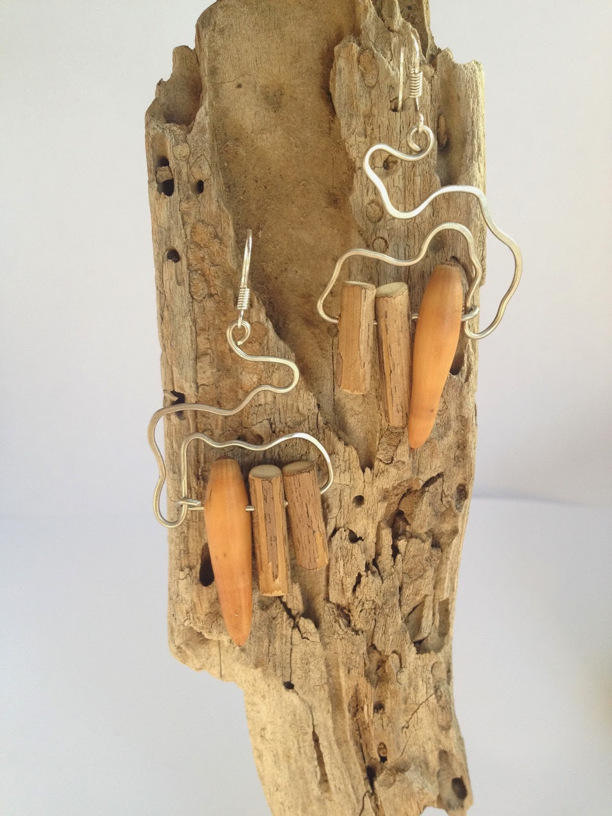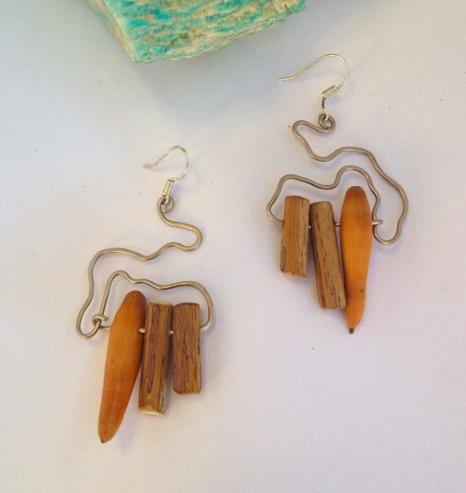 These earrings in particular were created using acorns from Oak trees and the branches of a Schefflera tree... as well as metal wire. Organic lines were made with the wire to represent the landscape in which these beautiful trees may be a part of.